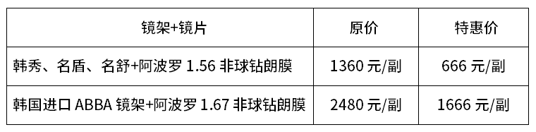 配框架眼鏡滿2666元,即贈(zèng)送價(jià)值328元(兒童)或價(jià)值368元(成人)太陽(yáng)眼鏡,同時(shí)還推出了多款特價(jià)爆款,具體如下: