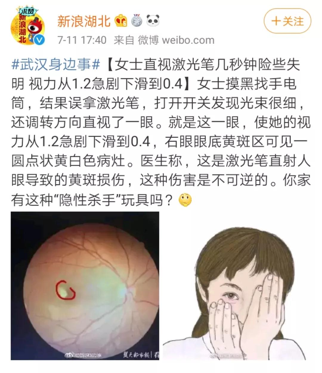 雖然媒體也經(jīng)常提醒要小心激光筆,但眼睛被激光筆重傷的事件仍然時(shí)有發(fā)生。這不,近又有一位女士遭了激光筆的“毒手”,僅看一眼,視力永久傷害