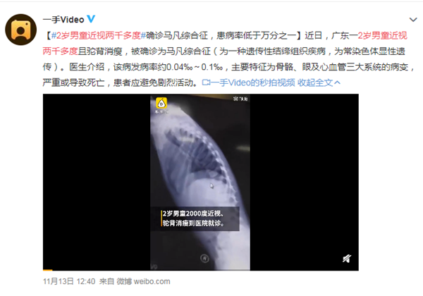 前兩日,一條#2歲男童近視兩千多#的微博上了熱搜,小編打開一看,原來男童并非由于觀看電子屏幕之類的不良用眼習慣導致的高度近視,而是由于一種名為馬凡綜合征的疾病導致的兩千多度近視。