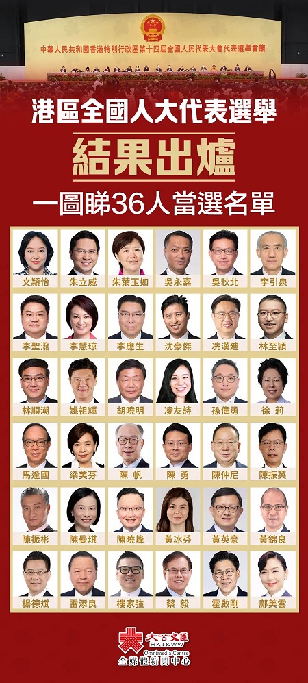 12月15日上午,香港特別行政區(qū)第十四屆全國(guó)人民代表大會(huì)代表選舉會(huì)議第二次全體會(huì)議在香港舉行,以無(wú)記名投票的方式,差額選舉產(chǎn)生了林順潮等36名香港第十四屆全國(guó)人大代表。?,斞劭萍瘓F(tuán)主席林順潮自2008年當(dāng)選為第十一屆港區(qū)全國(guó)人大代表,至今已連任四屆。新當(dāng)選的香港全國(guó)人大代表林順潮說(shuō):“中國(guó)歷經(jīng)百年滄桑,如今巨龍...