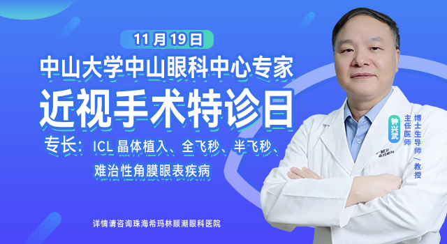11月19日近視手術特診日鐘興武教授坐診珠海?,斞劭漆t(yī)院!