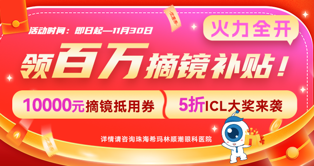 雙11摘鏡狂歡月·摘鏡三重禮1、檢查禮:11月到院享0元激光類(lèi)全套術(shù)前檢查,5折ICL全套術(shù)前檢查優(yōu)惠;2、預(yù)約禮:交定金享6000元/雙眼近視手術(shù)優(yōu)惠,11.11當(dāng)天抽10000元摘鏡優(yōu)惠;11月至高可抽5折摘鏡大禮!3、手術(shù)禮:11月完成手術(shù)并轉(zhuǎn)發(fā)活動(dòng)海報(bào)至朋友圈,瓜分10000元大獎(jiǎng)!注:(以上活動(dòng)內(nèi)容完整內(nèi)容,請(qǐng)咨詢(xún)?cè)诰€(xiàn)客服了解...