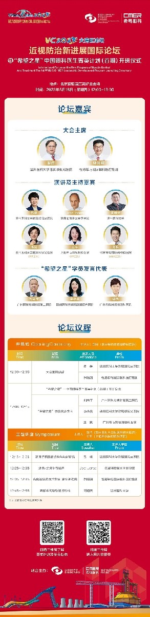 2023年5月18日12:00-13:00,2023視覺(jué)健康創(chuàng)新發(fā)展國(guó)際論壇Vision China 2023大灣區(qū)論壇——近視防治新進(jìn)展國(guó)際論壇將在北京首鋼園三高爐主會(huì)場(chǎng)盛大開幕,敬請(qǐng)期待。多位海內(nèi)外重量級(jí)嘉賓傾情助陣,集聚前沿智慧,全方位、多視角地探討,與近視防治密切相關(guān)的前沿技術(shù)和診療經(jīng)驗(yàn)集智聚力、共謀光明未來(lái),同期啟動(dòng)"希望之星...