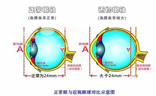 正常眼與高度近視眼的眼軸對比