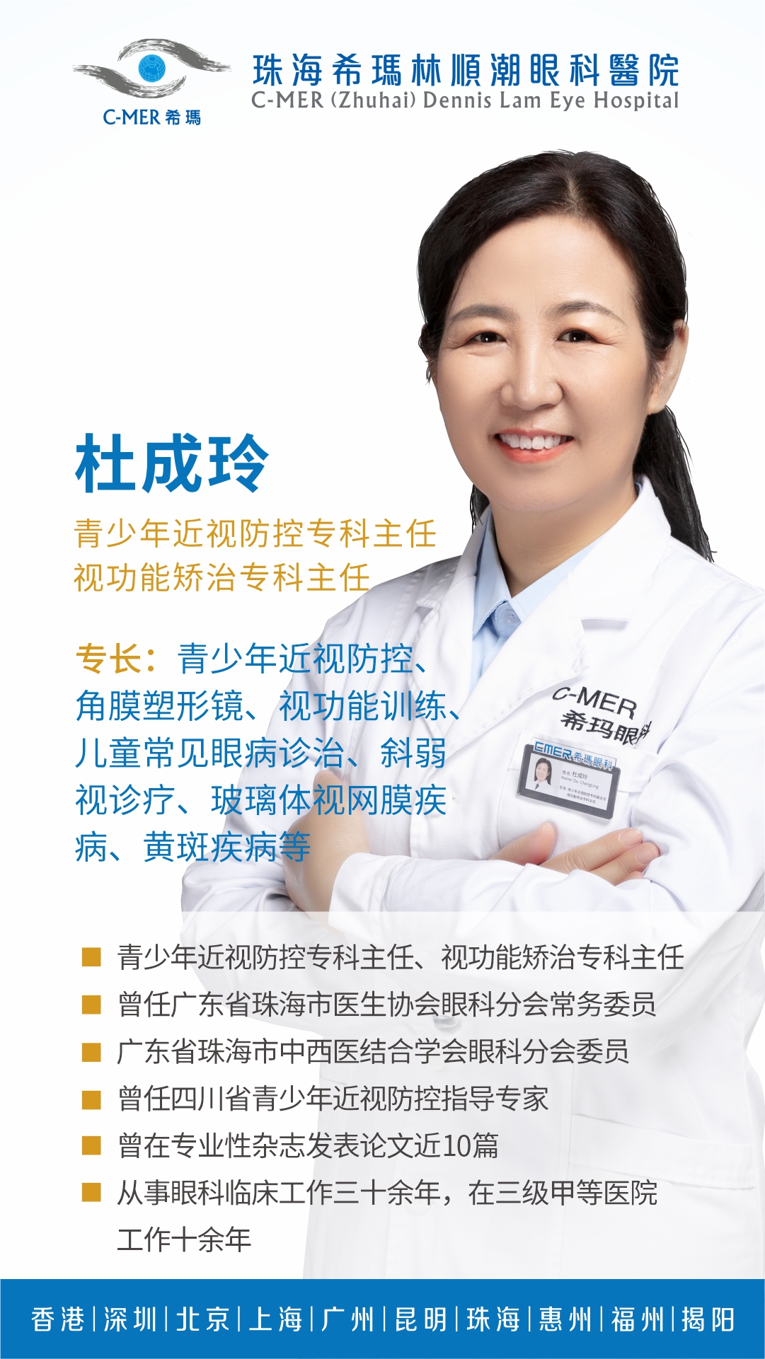 杜成玲副主任醫(yī)師是青少年近視防控??浦魅危瑥氖卵劭婆R床工作30余年。在國家三級(jí)甲等醫(yī)院工作十多年,在國家三級(jí)眼科??漆t(yī)院工作多年,曾先后在上海復(fù)旦大學(xué)附屬眼耳鼻喉科醫(yī)院、江蘇省人民醫(yī)院眼科進(jìn)修。對(duì)兒童常見病和多發(fā)病具有極其豐富的臨床經(jīng)驗(yàn),同時(shí)在角膜接觸鏡,角膜塑形鏡,各種功能性眼鏡的驗(yàn)配、視功能訓(xùn)練以及斜弱視治療方面具有較高的專業(yè)水平。
